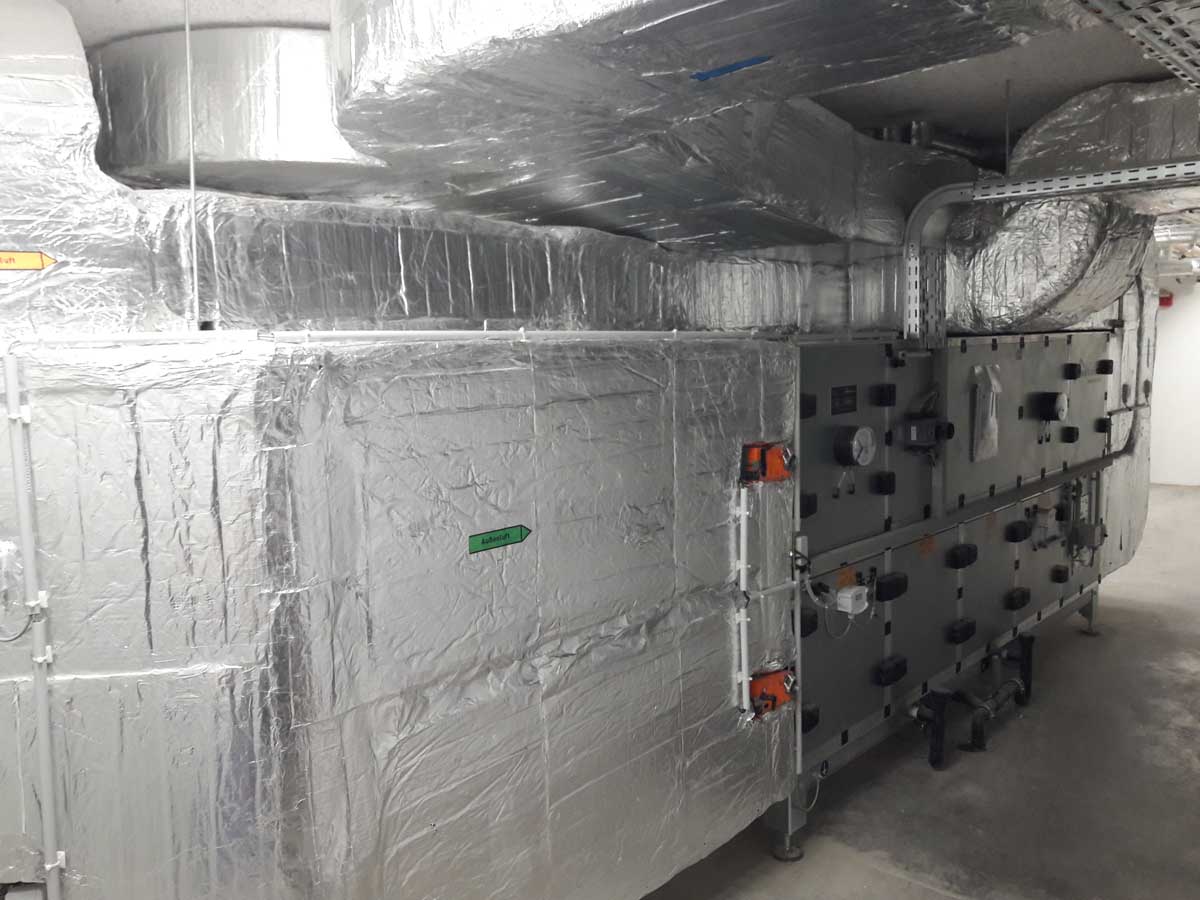Komplette Aufstockung 3.OG, Lüftung Schulküche EG, Erneuerung Heizzentrale samt Regelung, Umstellung von Gas auf Fernwärme für HK + WW-Erzeugung, Hygienische Einbindung der KW-Ringleitung mittels Hygiene-WC‘s